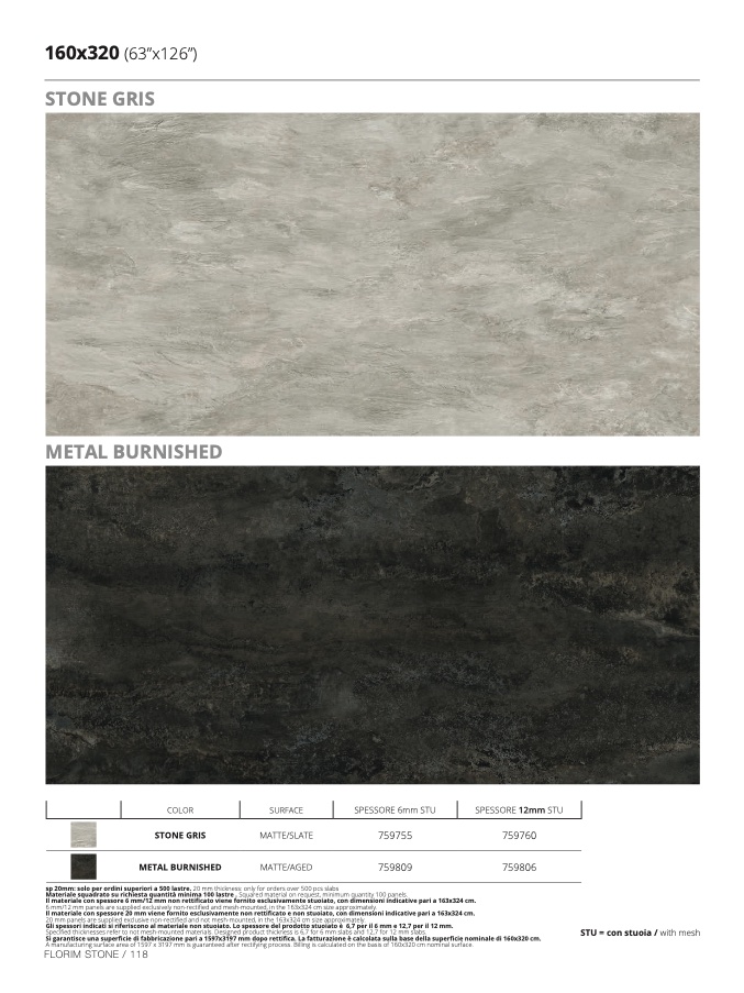sp 20mm: solo per ordini superiori a 500 lastre. 20 mm thickness: only for orders over 500 pcs slab