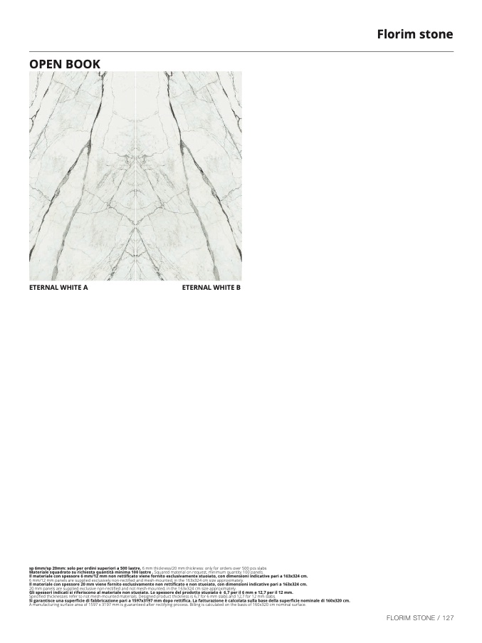 sp 6mm/sp 20mm: solo per ordini superiori a 500 lastre. 6 mm thickness/20 mm thickness: only for orders over 500 pcs slab