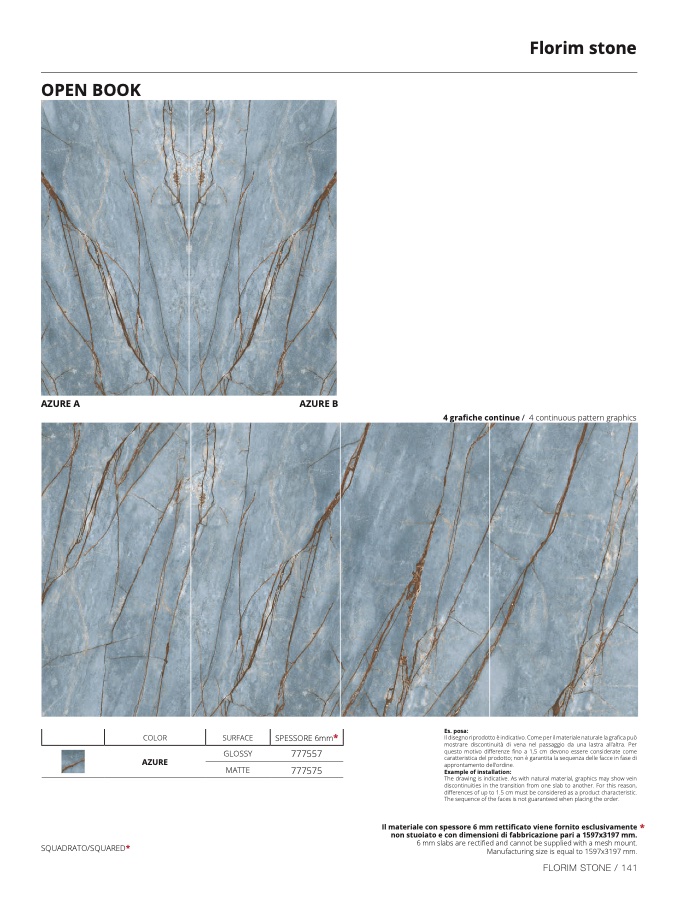 non stuoiato e con dimensioni di fabbricazione pari a 1597x3197 mm