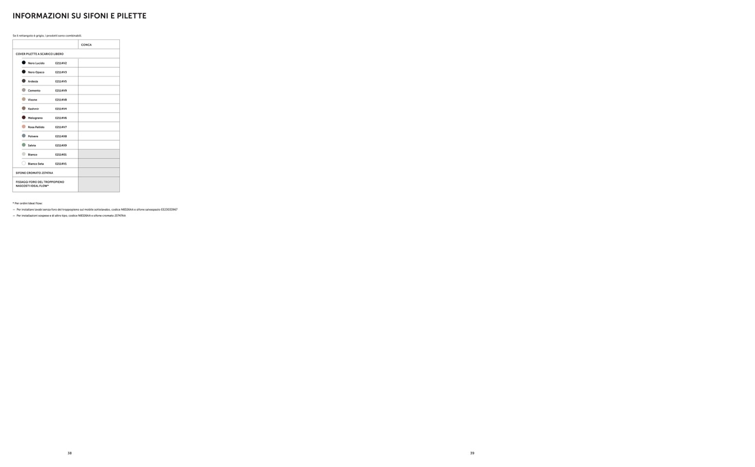 — Per installare lavabi senza foro del troppopieno sul mobile sottolavabo, codice N8326AA e sifone salvaspazio EE23033967