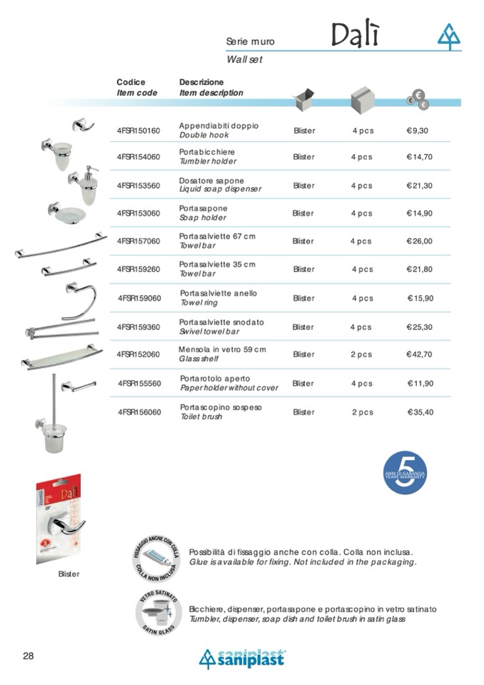 Possibilità di fissaggio anche con colla. Colla non inclusa.