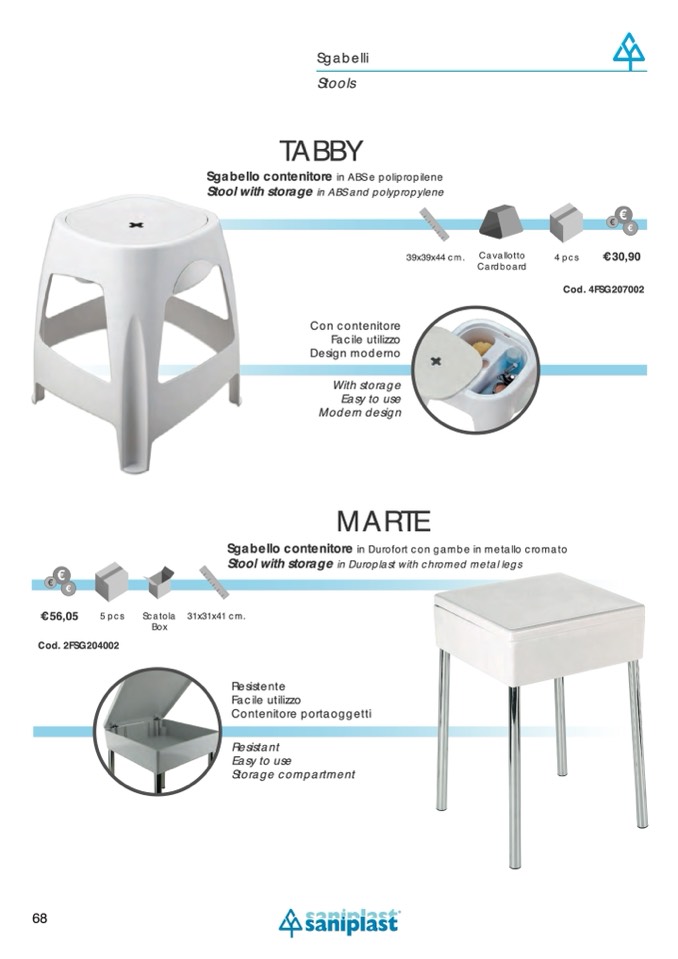 Sgabello contenitore in ABS e polipropilene