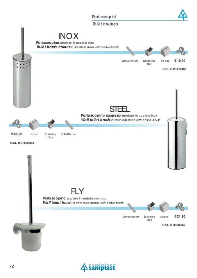 Portascopino setolato in acciaio inox