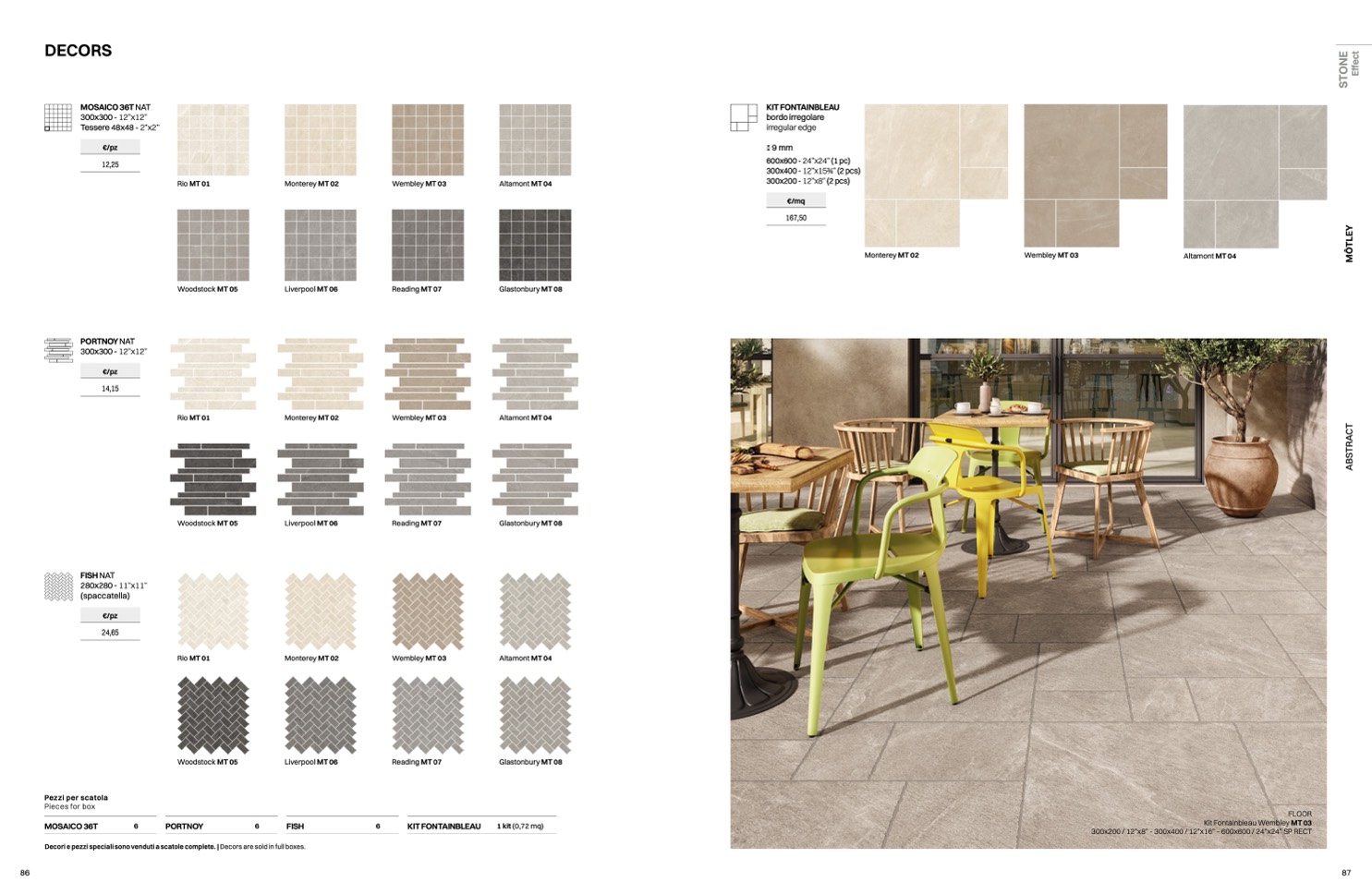 Decori e pezzi speciali sono venduti a scatole complete. | Decors are sold in full boxes.