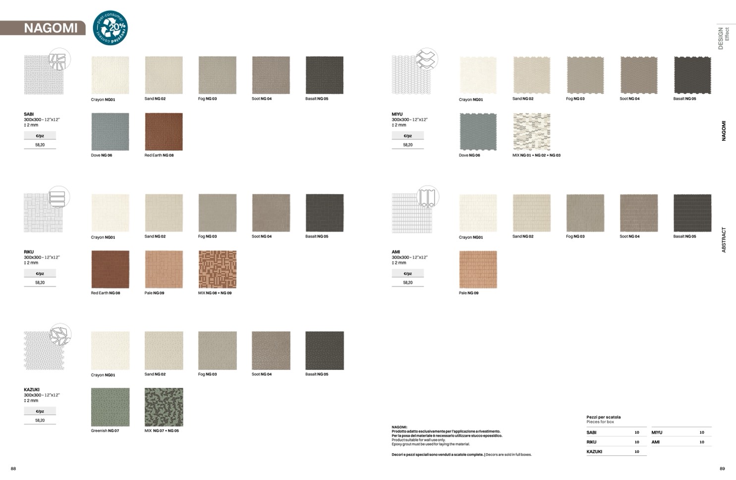 Decori e pezzi speciali sono venduti a scatole complete. | Decors are sold in full boxes.