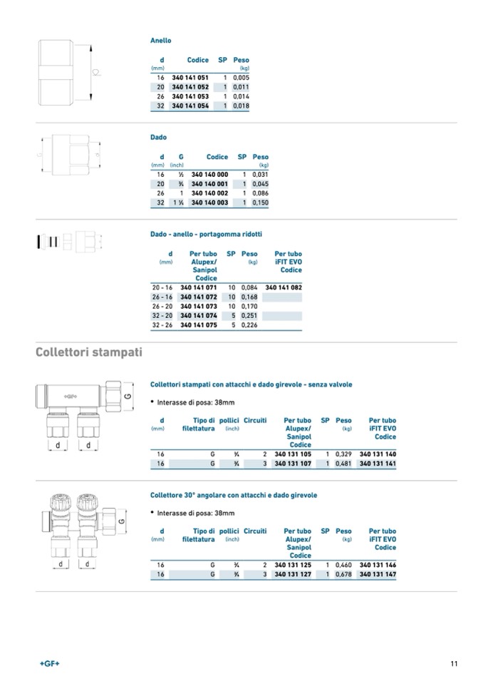 Collettori stampati con attacchi e dado girevole - senza valvole