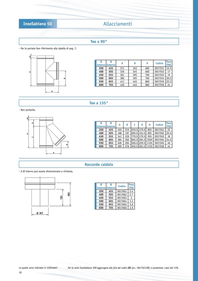 Per la serie InoxSabiana 50R aggiungere alla fine dei codici ZR (es.: 0017521ZR) e aumentare i pesi del 15%.