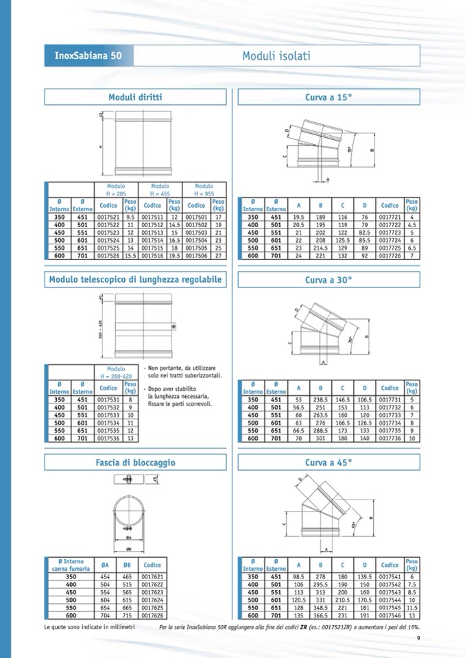 Per la serie InoxSabiana 50R aggiungere alla fine dei codici ZR (es.: 0017521ZR) e aumentare i pesi del 15%.