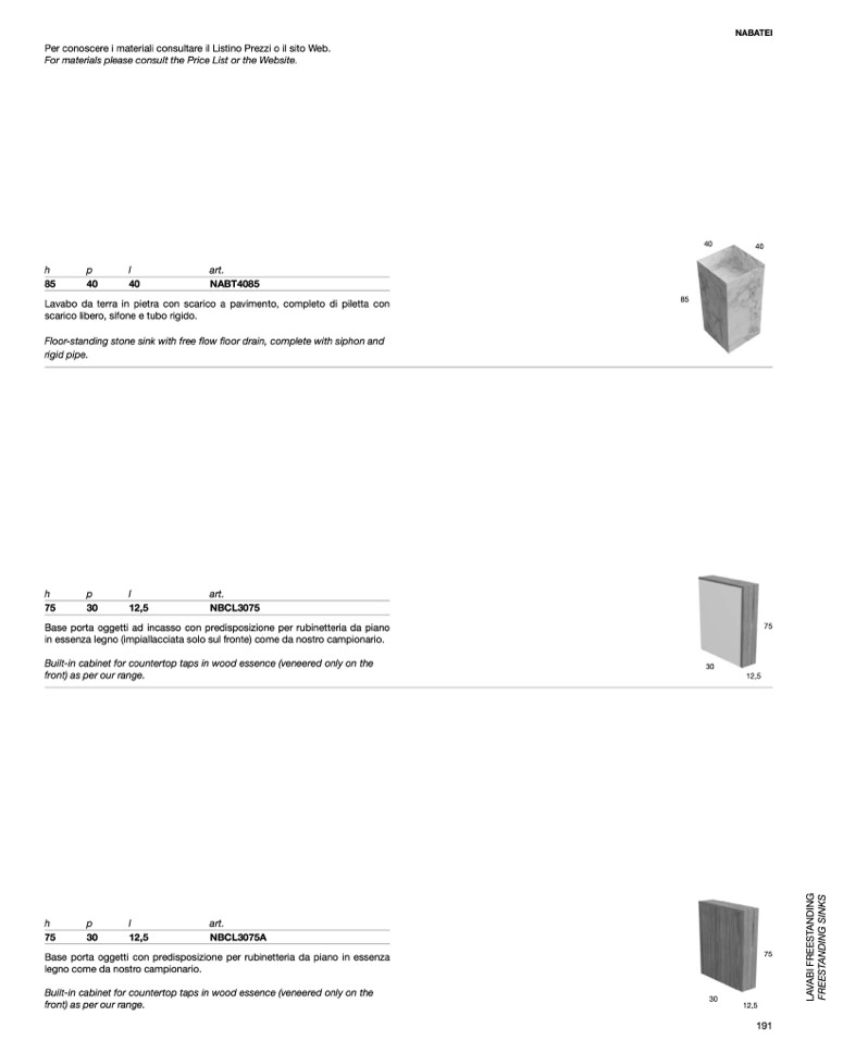 Per conoscere i materiali consultare il Listino Prezzi o il sito Web.