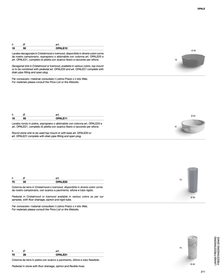 or to be combined with pedestal art. OPALE20 and art. OPALE21 complete with