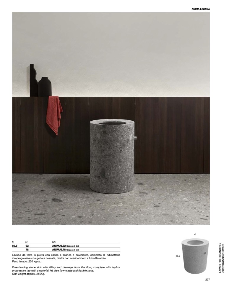 Peso lavabo: 250 kg ca.