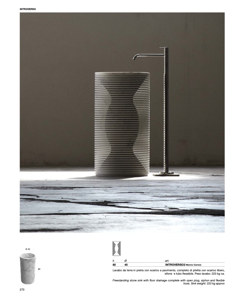Lavabo da terra in pietra con scarico a pavimento, completo di piletta con scarico libero,