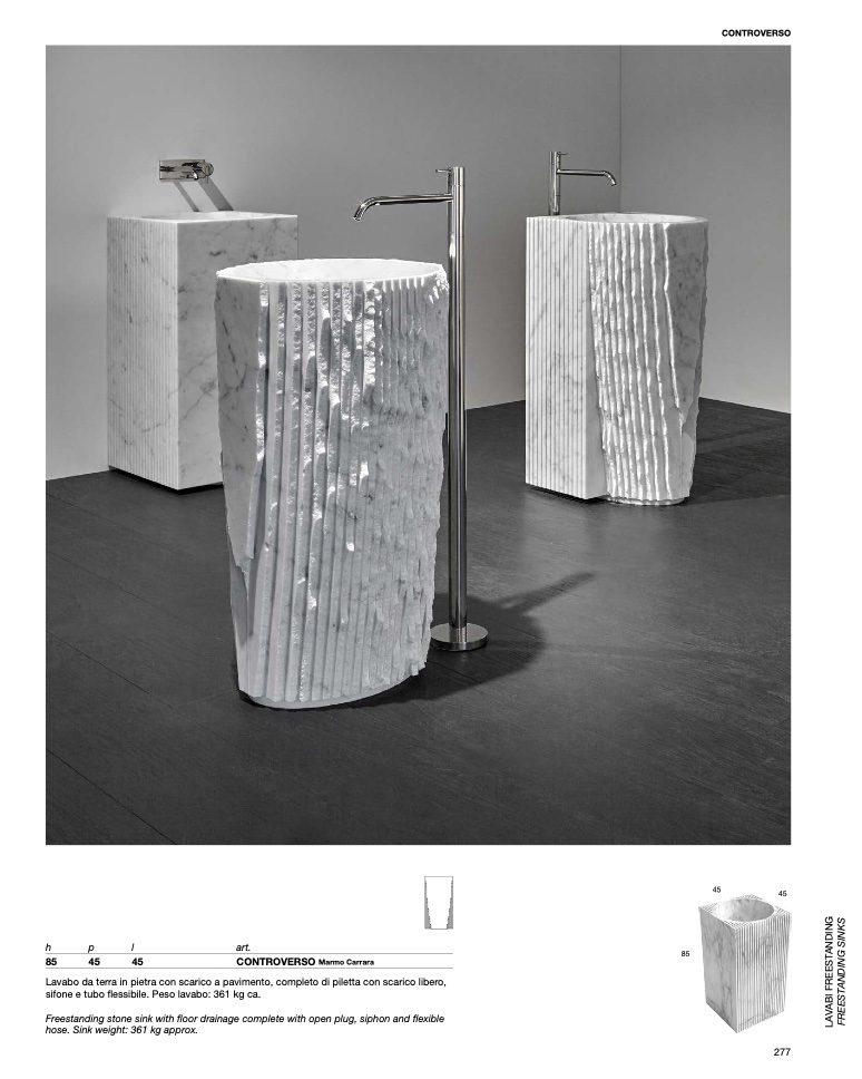 Lavabo da terra in pietra con scarico a pavimento, completo di piletta con scarico libero,