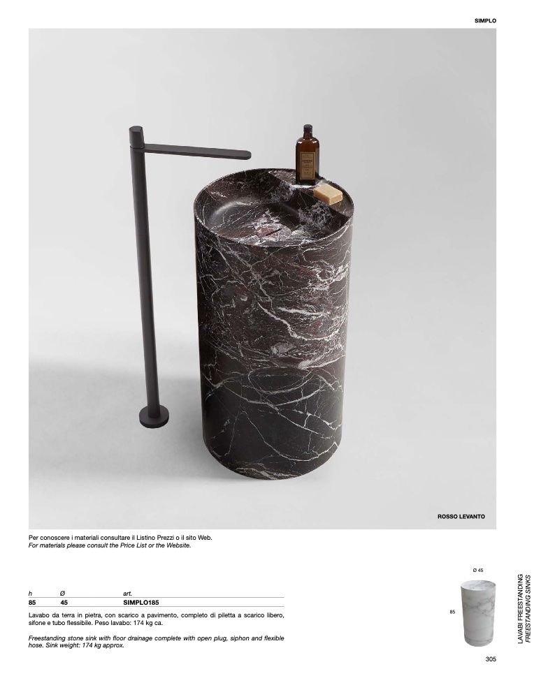 Lavabo da terra in pietra, con scarico a pavimento, completo di piletta a scarico libero,