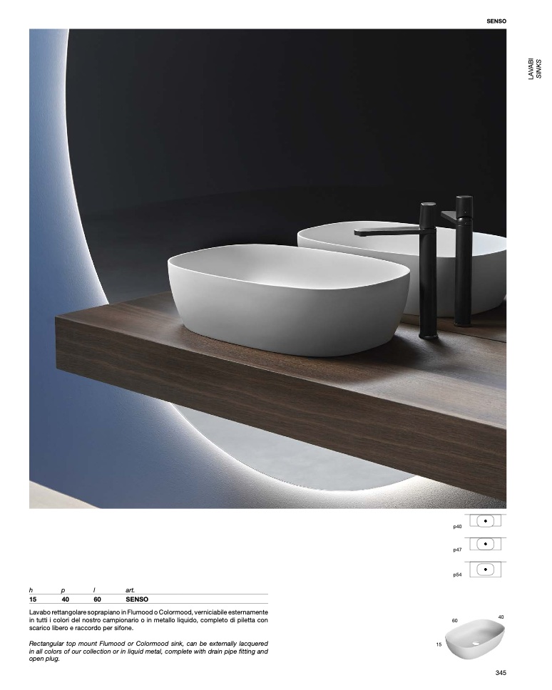 Rectangular top mount Flumood or Colormood sink, can be externally lacquered