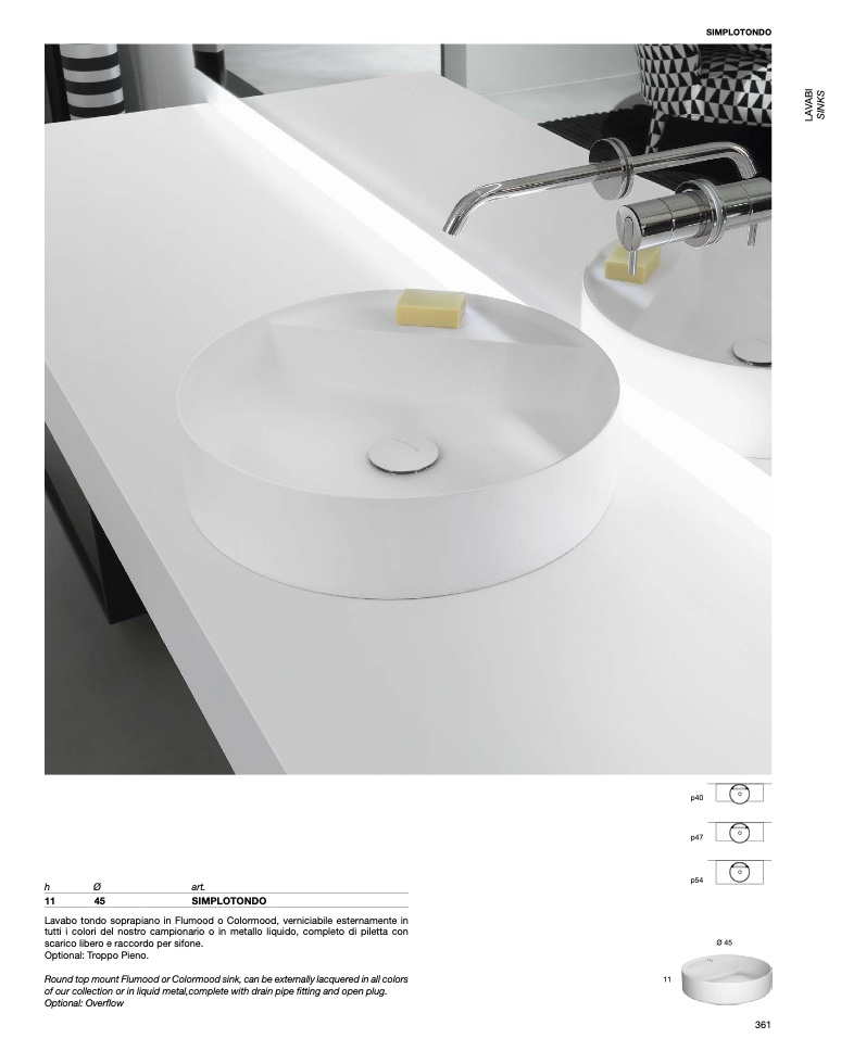 Round top mount Flumood or Colormood sink, can be externally lacquered in all colors