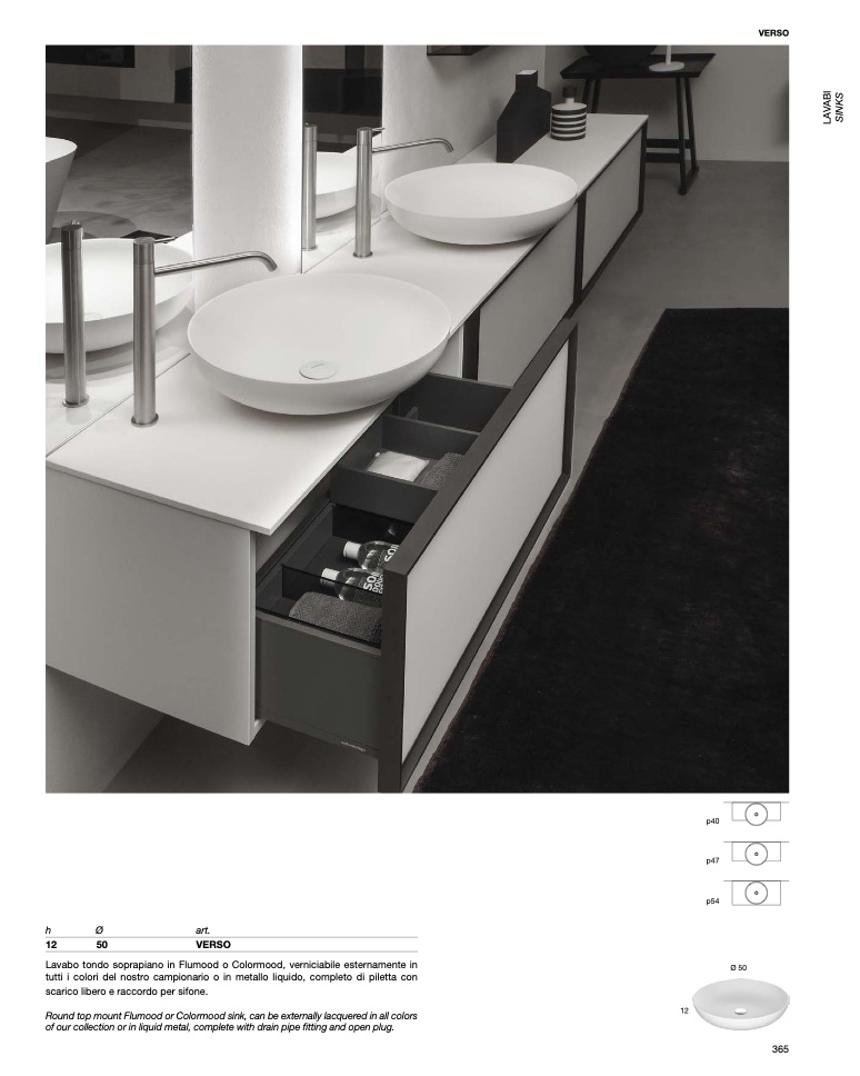 Round top mount Flumood or Colormood sink, can be externally lacquered in all colors