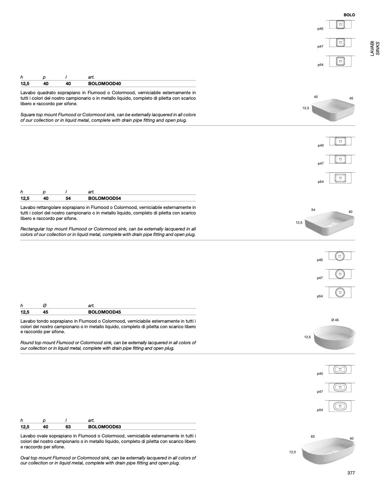 Round top mount Flumood or Colormood sink, can be externally lacquered in all colors of