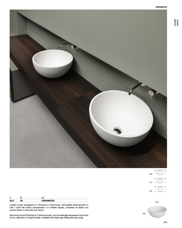 Round top mount Flumood or Colormood sink, can be externally lacquered in all colors