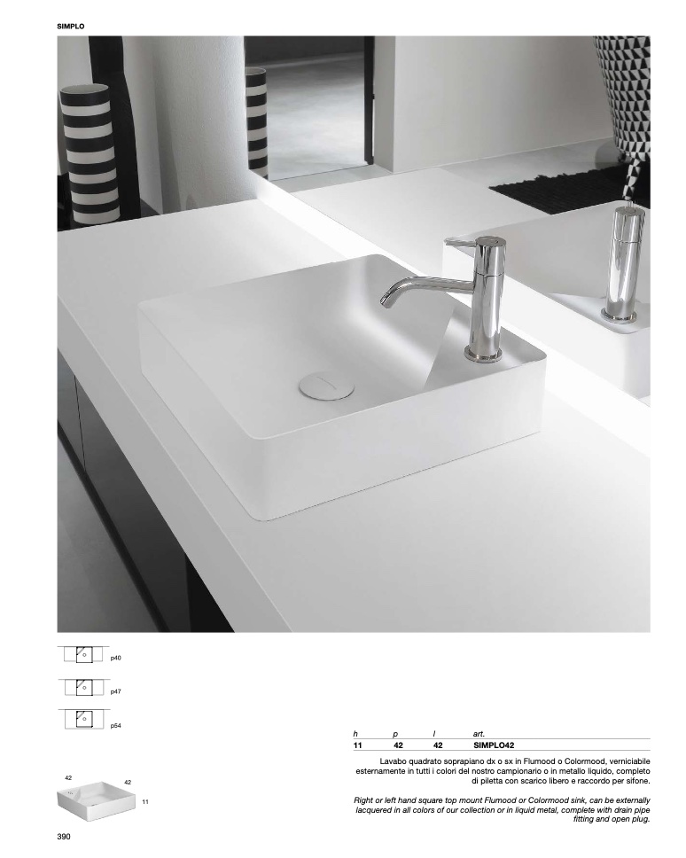 Lavabo quadrato soprapiano dx o sx in Flumood o Colormood, verniciabile