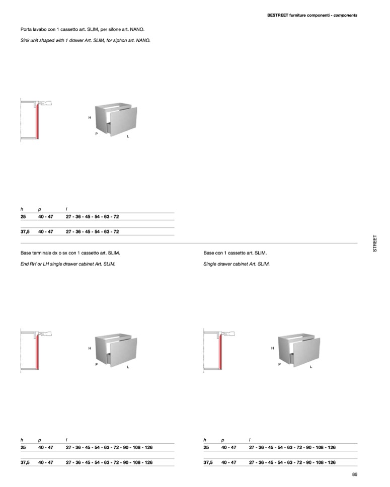 Porta lavabo con 1 cassetto art. SLIM, per sifone art. NANO.