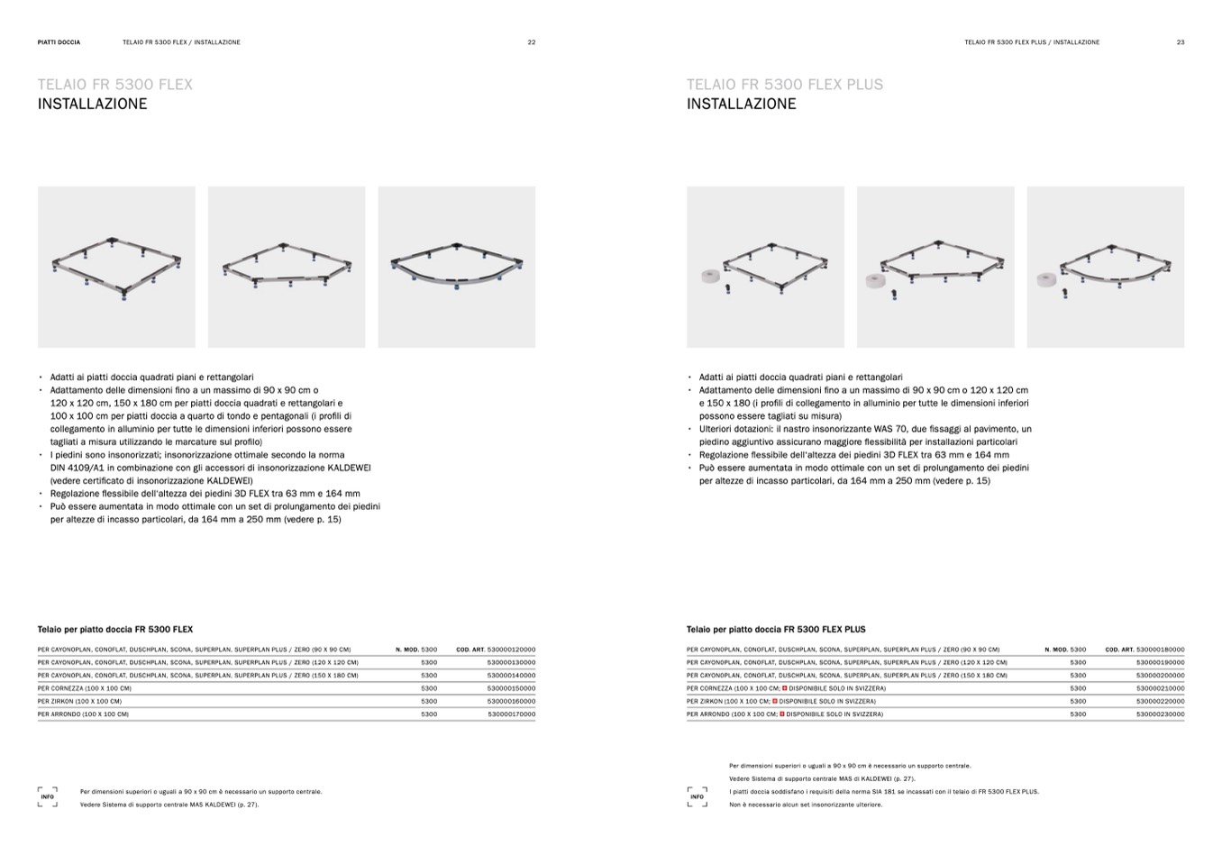 I piatti doccia soddisfano i requisiti della norma SIA 181 se incassati con il telaio di FR 5300 FLEX PLUS.