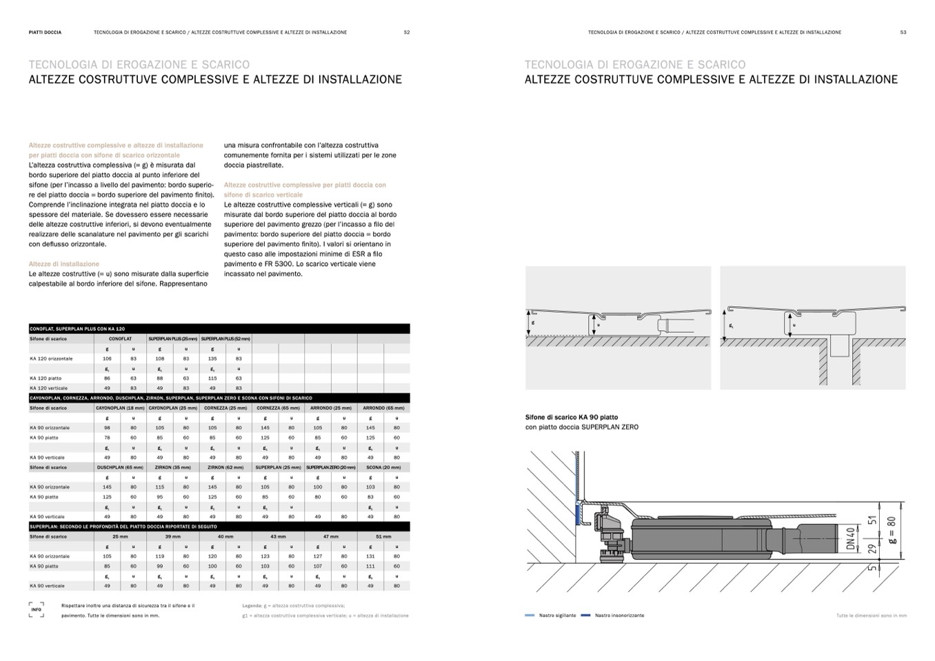 CAYONOPLAN, CORNEZZA, ARRONDO, DUSCHPLAN, ZIRKON, SUPERPLAN, SUPERPLAN ZERO E SCONA CON SIFONI DI SCARICO