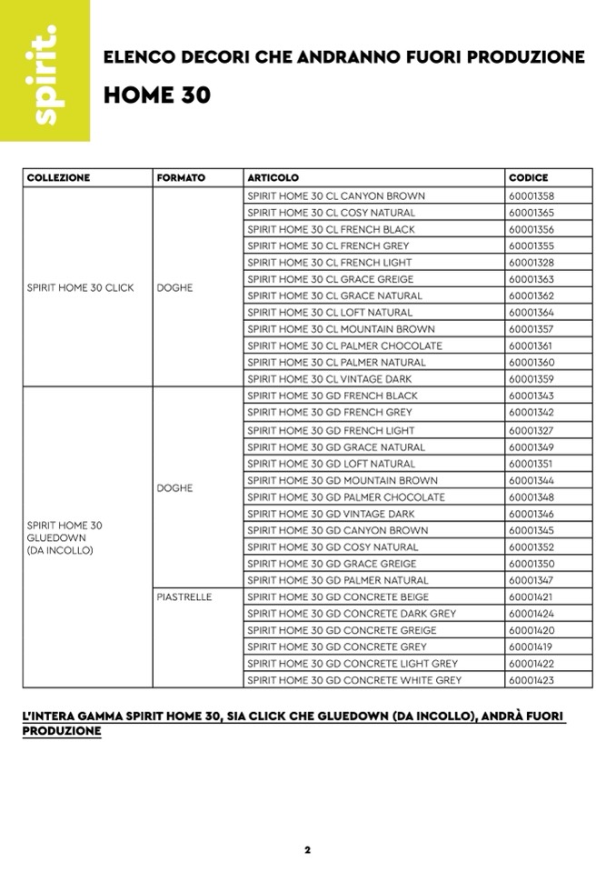 L’INTERA GAMMA SPIRIT HOME 30, SIA CLICK CHE GLUEDOWN (DA INCOLLO), ANDRÀ FUORI