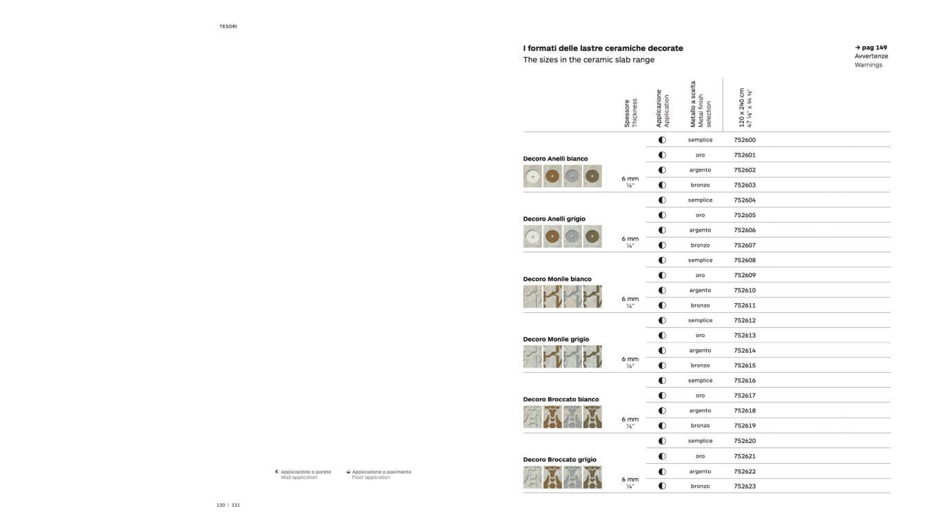 I formati delle lastre ceramiche decorate