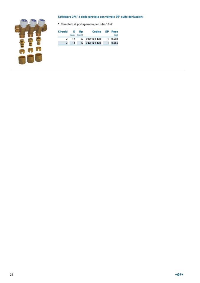 Collettore 3/4'' a dado girevole con valvole 30° sulle derivazioni