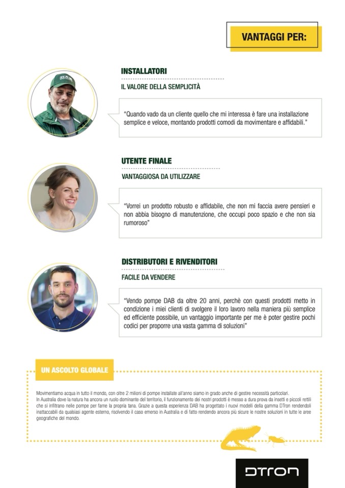 che si infiltrano nelle pompe per farne la propria tana. Grazie a questa esperienza DAB ha progettato i nuovi modelli della gamma DTron rendendoli