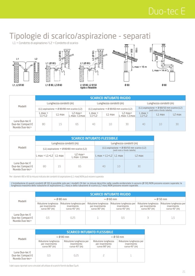 I dati sopra riportati sono vincolati all’utilizzo di scarichi forniti da Baxi S.p.A.