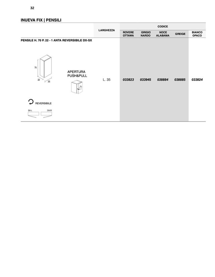 PENSILE H. 70 P. 22 - 1 ANTA REVERSIBILE DX-SX