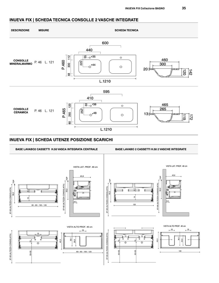 BASE LAVABO 2 CASSETTI H.50 2 VASCHE INTEGRAT