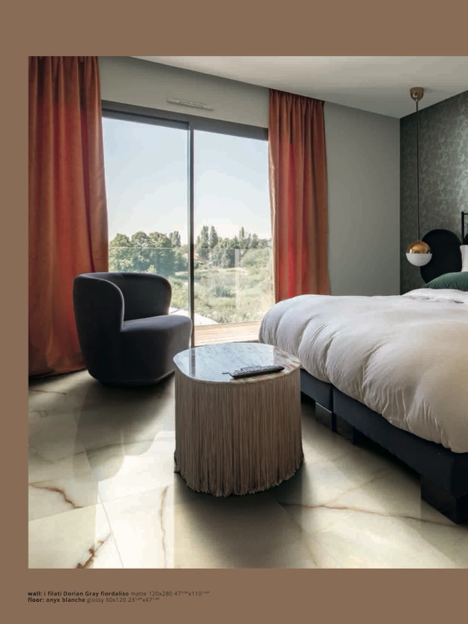 floor: onyx blanche glossy 60x120 235/8”x471/4”