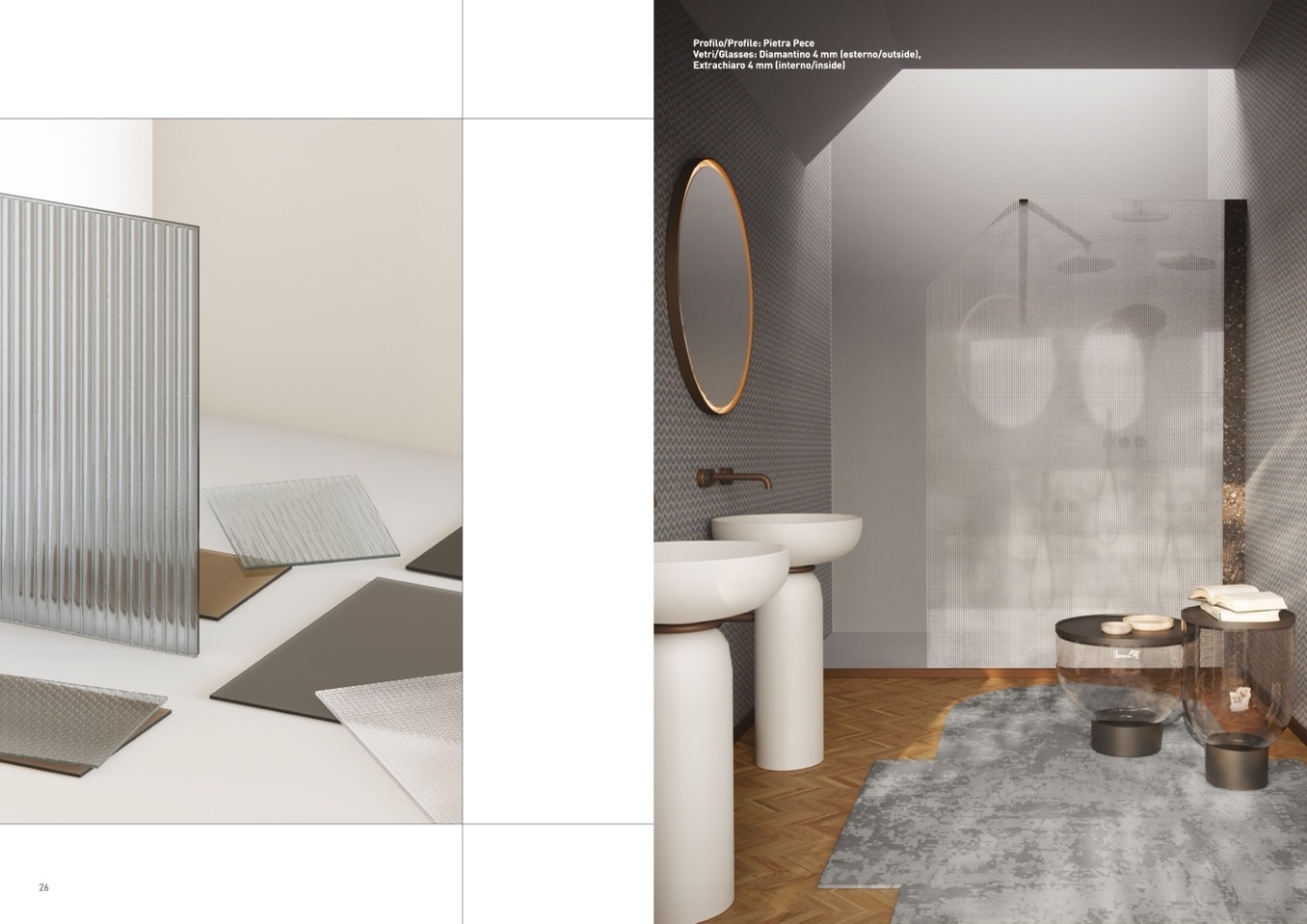 Vetri/Glasses: Diamantino 4 mm (esterno/outside),