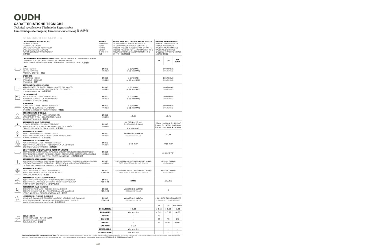 VALORI PRESCRITTI DALLE NORME EN 14411 - G
