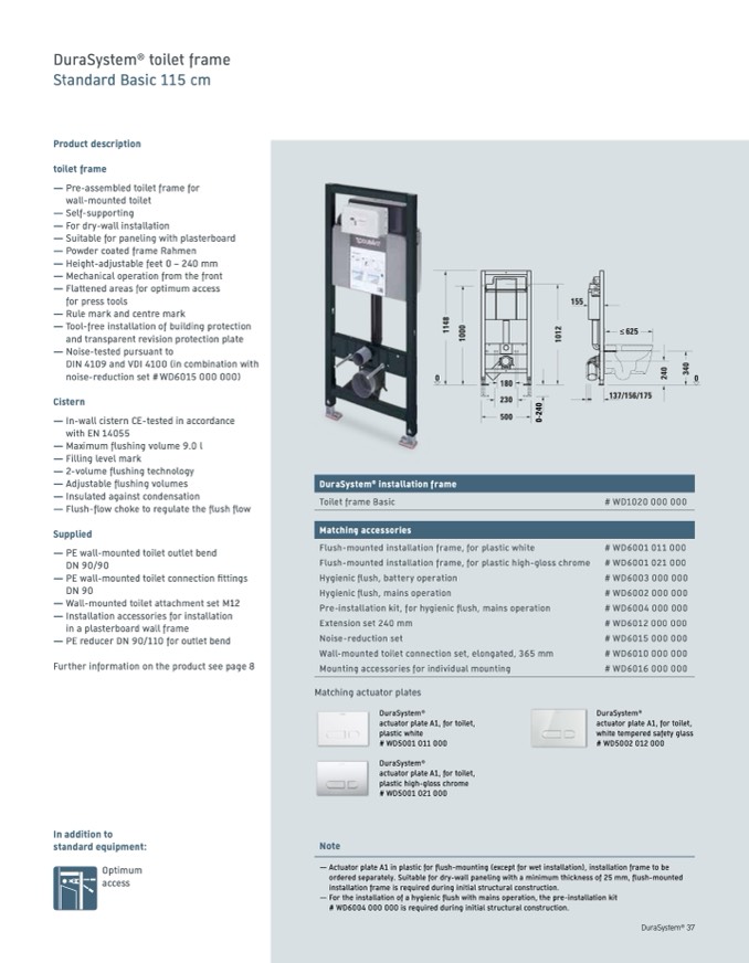 ordered separately. Suitable for dry-wall paneling with a minimum thickness of 25 mm, flush-mounted