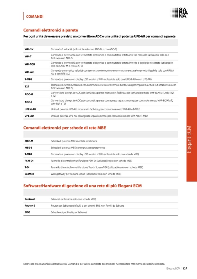 NOTA: per informazioni più dettagliate sui Comandi e per la lista completa dei principali Accessori fare riferimento alle pagine dedicate.