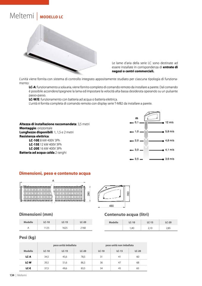 LC-A: funzionamento a sola aria, viene fornito completo di comando remoto da installare a parete. Dal comando