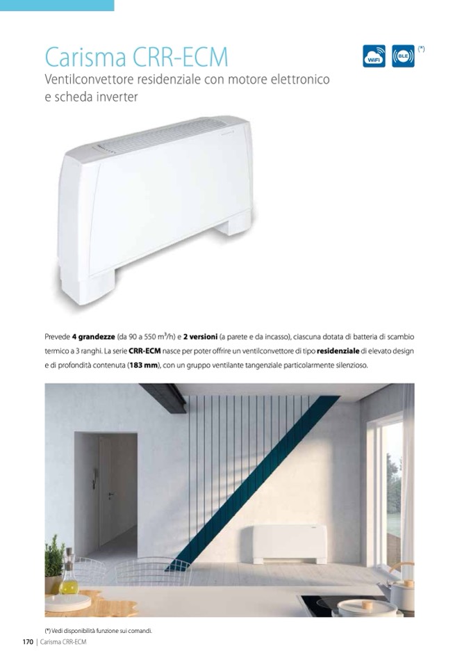 termico a 3 ranghi. La serie CRR-ECM nasce per poter offrire un ventilconvettore di tipo residenziale di elevato design