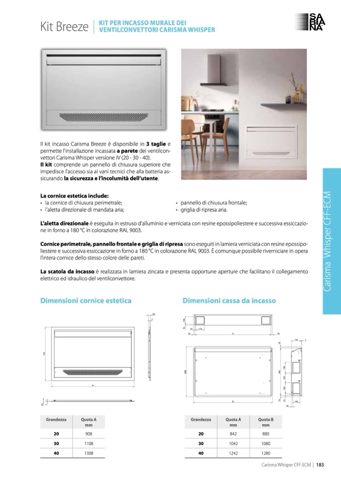 Il kit incasso Carisma Breeze è disponibile in 3 taglie e