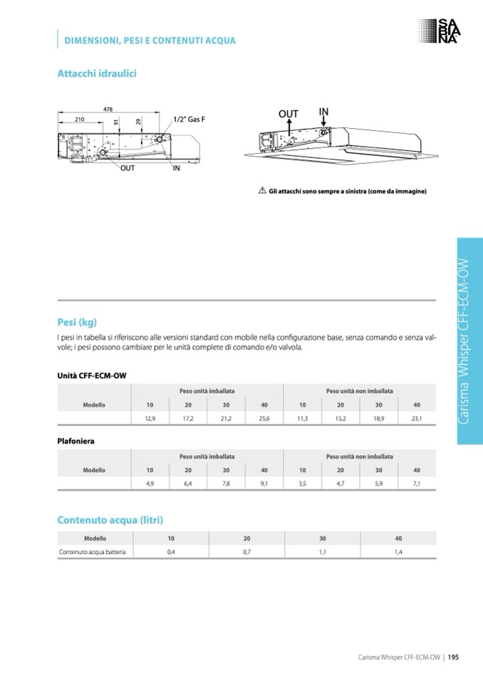 I pesi in tabella si riferiscono alle versioni standard con mobile nella configurazione base, senza comando e senza val-