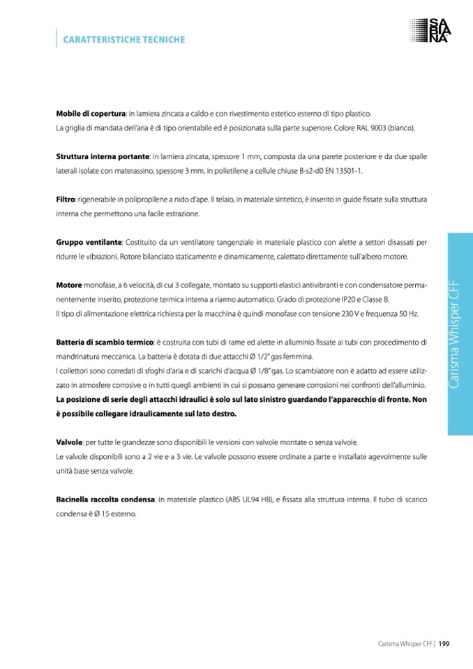 La griglia di mandata dell’aria è di tipo orientabile ed è posizionata sulla parte superiore. Colore RAL 9003 (bianco).