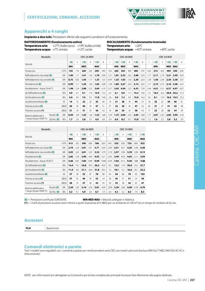 Tutti i modelli sono regolabili con i comandi a parete per ventilconvettori serie CRC con motori asincroni (escluso WM-AU, T-MB2, WM-503-AC-EC e
