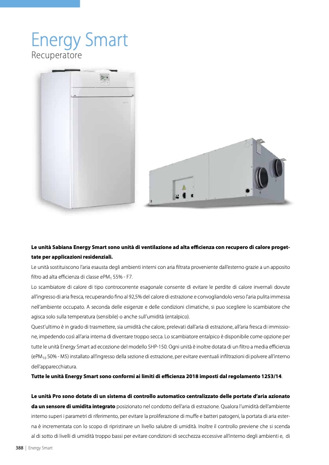 tutte le unità Energy Smart ad eccezione del modello SHP-150. Ogni unità è inoltre dotata di un filtro a media efficienza