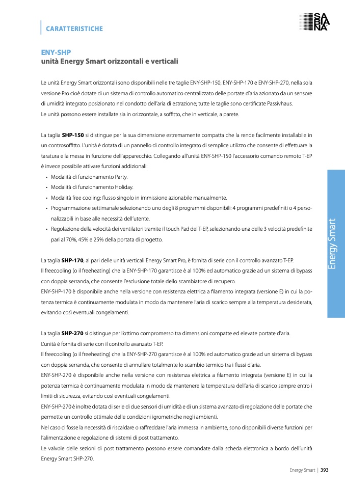 Le unità Energy Smart orizzontali sono disponibili nelle tre taglie ENY-SHP-150, ENY-SHP-170 e ENY-SHP-270, nella sola