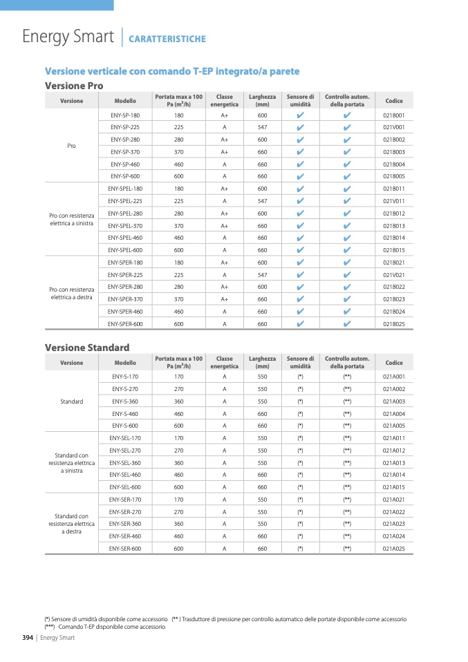 àdisponibilecomeaccessorio (**)Trasduttoredipressionepercontrolloautomaticodelleportatedisponibilecomeaccessorio