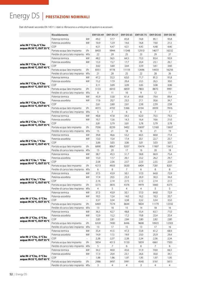 Dati dichiarati secondo EN 14511. I dati si riferiscono a unità prive di opzioni o accessori.