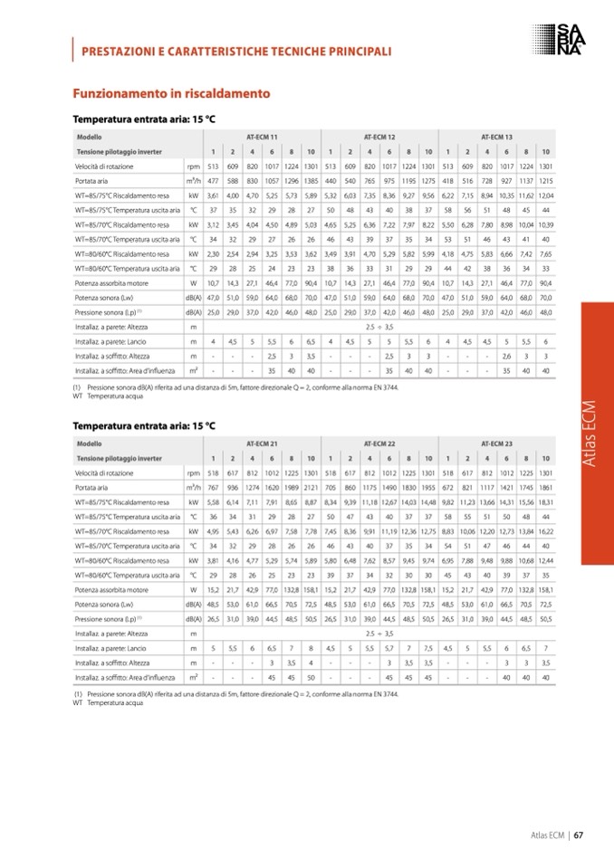 (1) Pressione sonora dB(A) riferita ad una distanza di 5m, fattore direzionale Q = 2, conforme alla norma EN 3744.